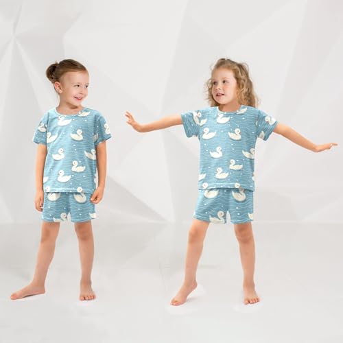 ALAZA Duck Blue Wave Pajamas Set Short Sleeve Cotton Sleepwear Summer Pjs 2 Piece 5-14Y 1