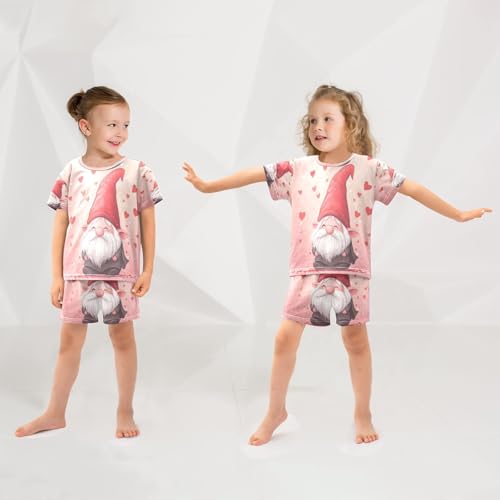 ALAZA Gnomes Love Valentines Cute Pajamas Set Short Sleeve Cotton Sleepwear Summer Pjs 2 Piece 5-14Y 2