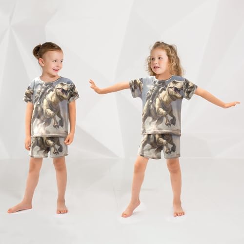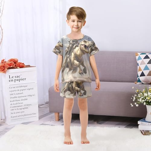 ALAZA Hipster Dinosaur Animal Color Pajamas Set Short Sleeve Cotton Sleepwear Summer Pjs 2 Piece 5-14Y 2