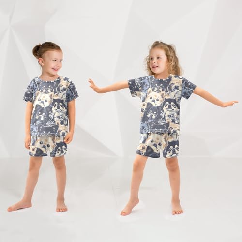 ALAZA Hipster Puppy Dog Retro Cute Pajamas Short Sleeve 2 Piece Sleepwear Top and Bottom Pajama Set Unisex 2