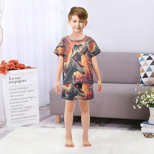 HOT ! senya Short Sleeve Pajamas Sets Summer Cotton Sleepwear T-rex Vector Style Portrait