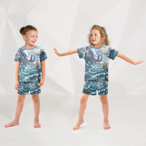ALAZA Octopus Boats Ocean Fantasy Pajamas Set Short Sleeve Cotton Sleepwear Summer Pjs 2 Piece 5-14Y 5