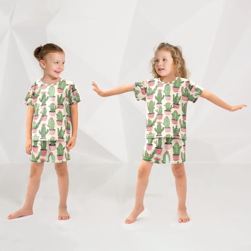 ALAZA Cute Cactus Dots Pajama Set Short Sleeve Sleepwear Soft Lounge Nightwear 3