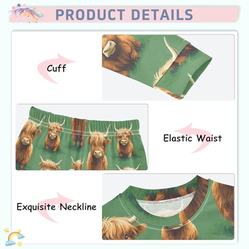 More information about Pigsaly Pajama Set 2 Piece Spring Grass Cute Brown Highland Cow Cattle Pajama Sets Long Sleeve Pjs Sleepwear 3T