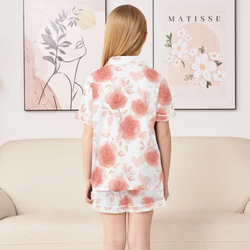 Pink Rose Floral Fantasy Pajamas Set Summer Button Down Sleepwear Pjs Sets Comfy Loungewear 2