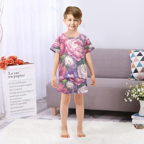 Pajama Sets Short Sleeve Colors Floral Pattern Soft Cotton Summer Sleepwear 2 Piece PJS Size 5-14T 6