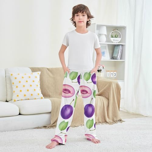 J JOYSAY Fresh Plum Leaves White Pajamas Pants Soft Long Pajama Bottoms Lounge Sleep Pants Size S-XL 4