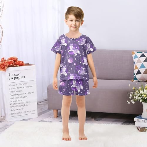 ALAZA Wolf Starry Sky Pajamas Set Short Sleeve Cotton Sleepwear Summer Pjs 2 Piece 5-14Y 5