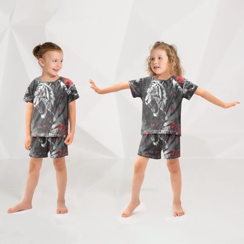 ALAZA Tiger Animal Red Pajamas Set Short Sleeve Cotton Sleepwear Summer Pjs 2 Piece 5-14Y 6
