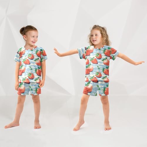ALAZA Strawberries Blue Stripes Pajama Set Short Sleeve Sleepwear Soft Lounge Nightwear 1