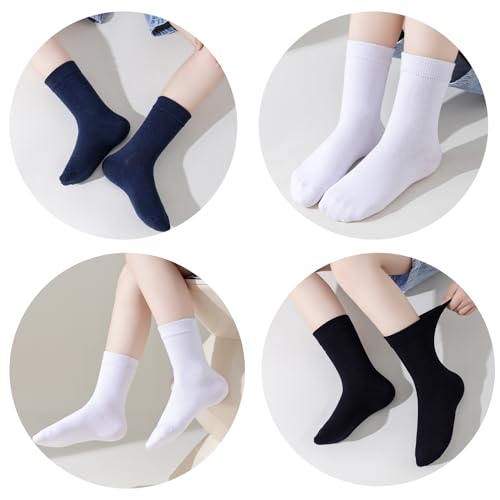 Marchare Boys Girls Seamless Crew Socks Soft School Dress Socks Uniform Calf Socks Black White Navy 4