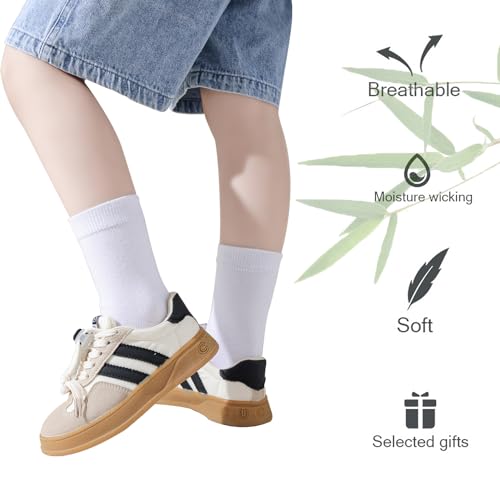 Marchare Boys Girls Seamless Crew Socks Soft School Dress Socks Uniform Calf Socks Black White Navy 5