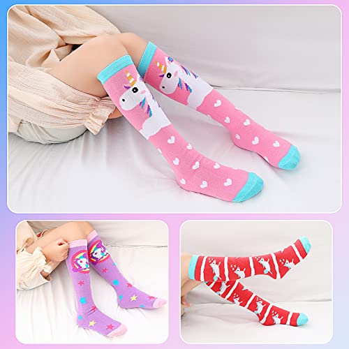 PHOGARY 6 Pairs Girls Knee High Socks, Cute Socks Colorful Cartoon Animal Welly Socks Warm Cotton Crazy Fun Kids Odd Socks Mid Calf Long Boot Socks For 3-12 Years Girls, One Size 3