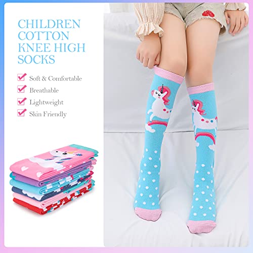 PHOGARY 6 Pairs Girls Knee High Socks, Cute Socks Colorful Cartoon Animal Welly Socks Warm Cotton Crazy Fun Kids Odd Socks Mid Calf Long Boot Socks For 3-12 Years Girls, One Size 5