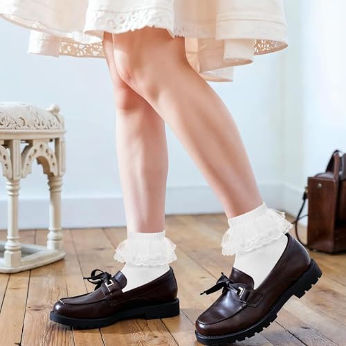 • Delicate Lace Frilly: Girls white socks with exquisite lace embroidered ruffle design, making little girls look more cute, sweet and elegant, perfect for basic school uniforms and daily outfits.