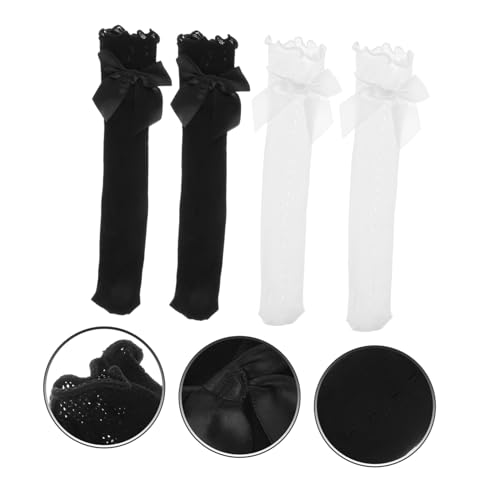 More information about 4pairs Girls High Socks Boys and Girls Lace Socks White Ruffle over Calf Decorative