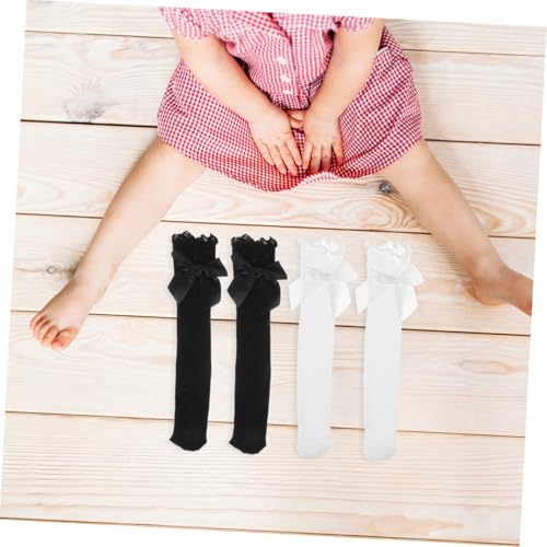 4pairs Girls High Socks Boys and Girls Lace Socks White Ruffle over Calf Decorative 1