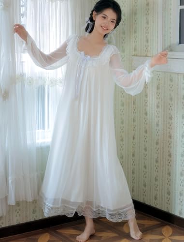 • Long Sleeve: Basic nightshirt featuring sheer long sleeves end up with cute elastic cuffs,easy to pull up,old fashioned style ruffled hem long lounger dress