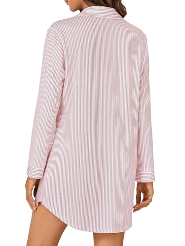 • Striped print sleepwear, collar v neck, button down, long sleeve, a chest pocket, soft and breathable fabric, curve hem, comfy stripes nightshirt for women and girls.