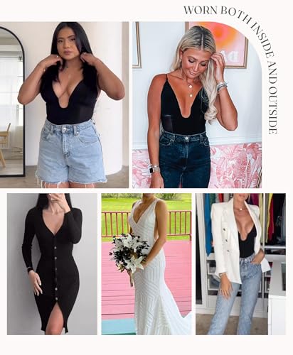 • U PLUNGE SHAPEWEAR BODYSUIT WITH BRA: Our body shaping bodysuit can be worn as outerwear directly. Featuring a thong design with a wired U plunge and softly padded cups for comfortable coverage, you can go bra-free while enjoying gentle breast support. This bodysuit maintains an hourglass figure throughout the day, enhancing your attractiveness regardless of the season.