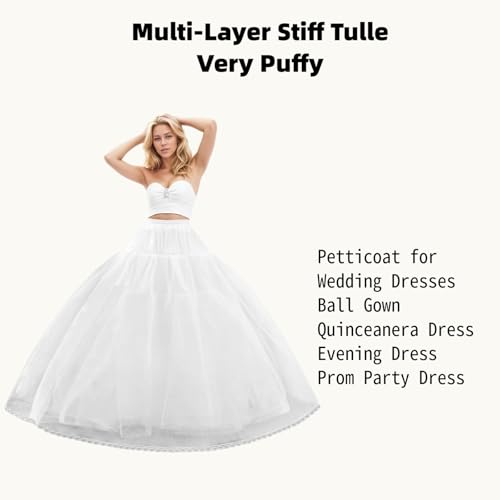 • Occasion:This 8 layer hoopless petticoat perfect for wedding dress, quinceanera, princess dresses, prom party evening cosplay dresses, masquerade ball gowns. this petticoat will make your dress more puffy and charming.