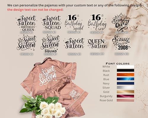 Sweet Sixteen Pajamas - Personalized Pajama Set for Women - Birthday Party Monogram Satin Pajamas Set - Birthday Gifts Sweet 16 Gift for Girls Multicolors 4