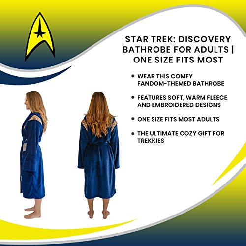 • Makes A Great Gift: Specially made for relaxing on your favorite starship, this officially licensed Star Trek Discovery Adult Bathrobe keeps the wearer feeling relaxed. Give Trekkies the gift of comfort with this lightweight fleece robe.