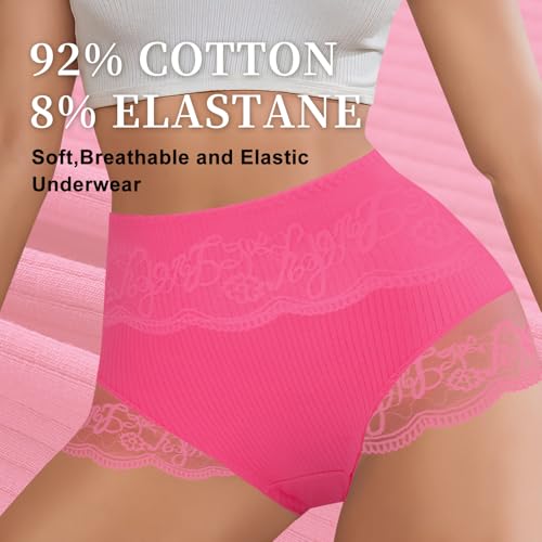 • 【High Waist Design】This high waisted cotton underwear for women, with a soft elastic waistband, can fit snugly around the waist. The seam lines are smooth and will not irritate. The cotton lace panties provide moderate tummy control, which will not cause discomfort whether it is daily walking or sitting in the office for a long time.