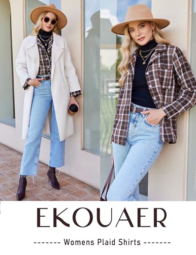 HOT ! Ekouaer Pajamas Set for Womens 2 Piece Cotton Plaid Pjs Long Sleeve Sleepwear Soft Button Down Loungewear with Pockets