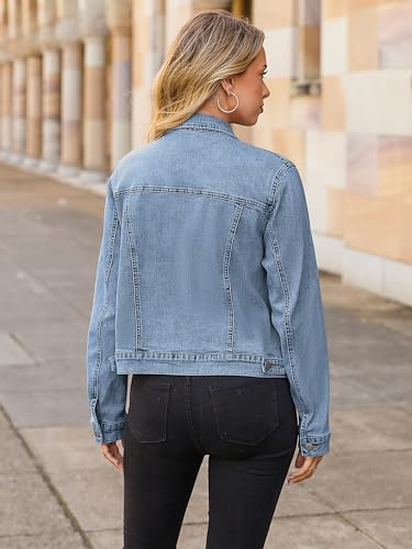 • Comfy breathable: Crafted from a soft 98%cotton 2%elastane blend with a hint of stretch, soft and comfortable fabric, durable denim offers comfy, mobility, and versatility. Trucker jean jacket women, fall clothes for women, autumn denim jacket for women, denim jackets for women fashion.