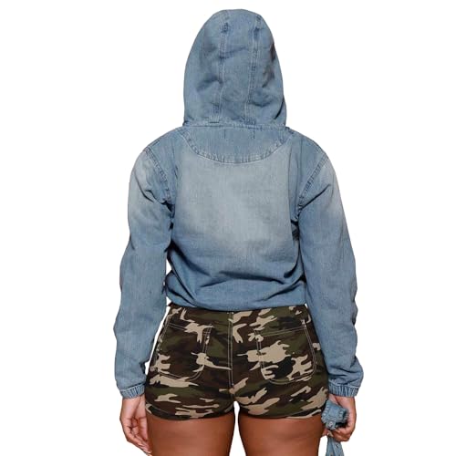 • DESIGN: This Thin Women Zip Up Jean Jacket Hoodie Features A Distinctive Drawstring Hood And Half-Zipper, While The Stretchable Cuffs And Waist Elastic Rope Ensure A Comfortable Fit And Unrestricted Mobility.