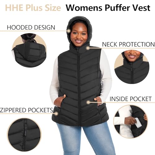 Womens Plus Size Packable Puffer Vest 1X-6X Women's Hooded Lightweight Quilted Puffy Vest 4