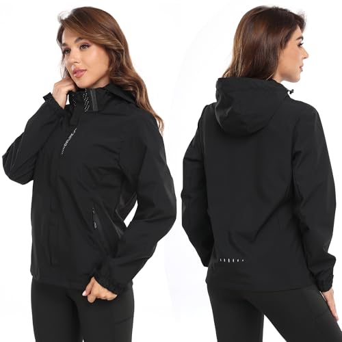 Women's Thin Rain Jacket waterproof Lightweight RainCoat with Hood for Golf Outdoor Hiking Windbreaker S-2XL 4
