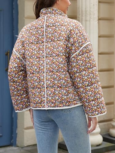 Muchpow Quilted Puffer Jacket for women Floral Printed Lightweight Cropped Button Down Outerwear with Pockets 5
