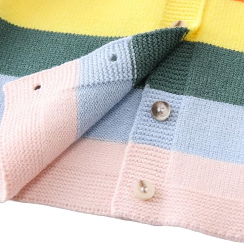 Girls' Rainbow Sweater Cardigan Button Long Sleeved Striped Rainbow Knit Sweater 6