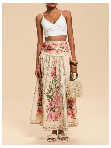 More information about MakeMeChic Women's Floral Maxi Skirt High Waist Ruched Ruffle Shirred Flare Boho Skirts