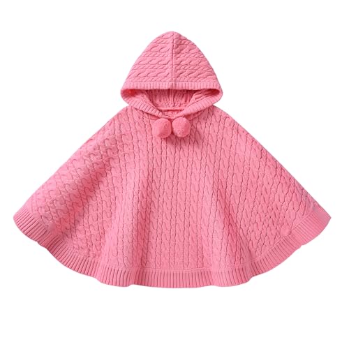 JSTEX Girls Poncho Sweater Cable Knit Cape Girl Hooded Pullover Sweater Holiday Kids Shawl Wrap for 6-12 6