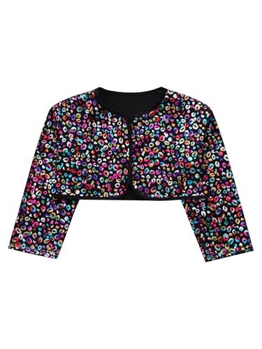 TiaoBug Girls Boys Metallic Leopard Print Long Sleeve Bolero Shrugs Wedding Party Cardigan Cheerleading Dance Tops 7
