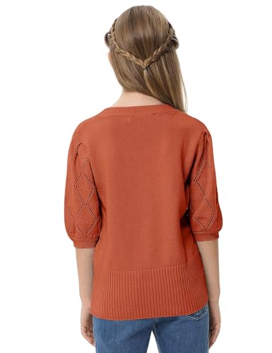 Cute Girls Crewneck Sweater with Puff Short Sleeves for Fall 6