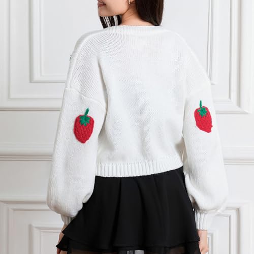 Ladies Single-Breasted Knitwear, Girls Leisure Style Strawberry V-Neck Puff Long Sleeve Knitted Coat Slim Cardigan 5