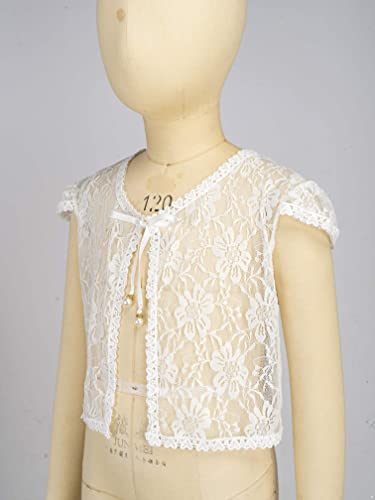 Little Girls Floral Lace Hollow Shrug Cardigan Tops Summer Casual Short Sleeve Bolero Dress Cover Up 4