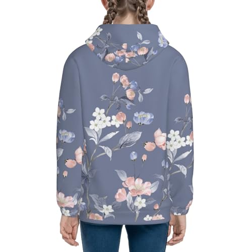 More information about Watercolor Flowers Butterfly Kid Hoodies Boys Zip Up Sweatshirts Girls Pullover with Pocket