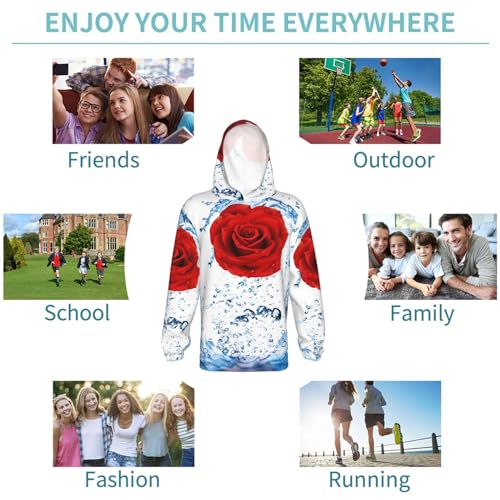 Red Rose In The Water Boy, Girls Sports Shirt Youth Pullover Fashion Hooded Sweatshirt 3