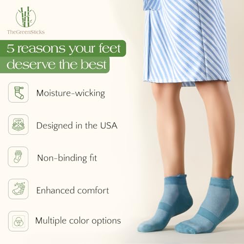 • What’s in the Pack? - Includes 6 pairs of TheGreenSticks Bamboo Rayons Diabetic Ankle Socks in stylish colors - 2SeaGreen, 2Purple & 2SkyBlue; Designed for both men (US 7–10) and women (US 8–11), combining comfort, support, and everyday style