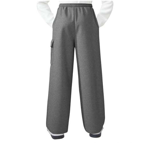 Finelylove Boys Baggy Cargo Sweatpants Wide Leg Open Bottom Fleece Jogger Straight Workout Active Sweat Pants 5-15 Years 7