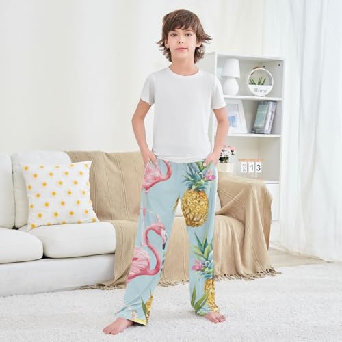 More information about Flamingo Pineapple Floral Boys Long Pants Soft Trousers Elastic Waist Kids Lounge Bottoms with Pockets S-XL