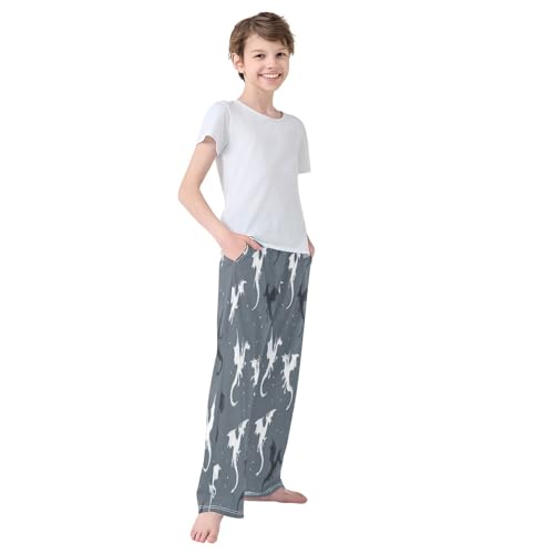 White Black Dragons Pajama Pants Soft PJ Bottoms Lounge Pants for Sleepwear Sport Size 6–14 Years 5