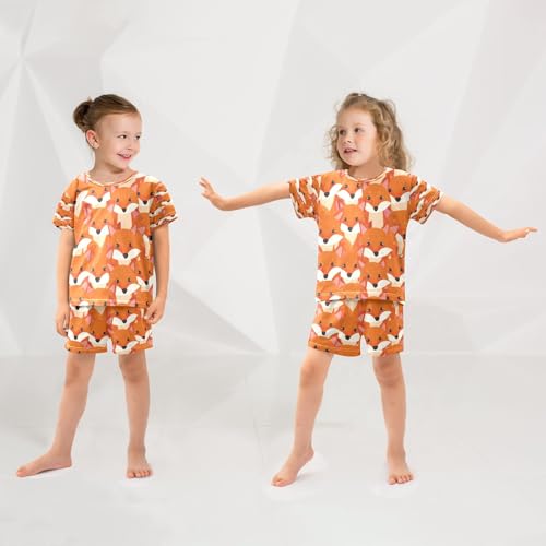 Fox Seamless Pattern Kids Pjs Set Boys Girls Summer Short-Sleeve Sleepwear Pajamas 2PCS 4