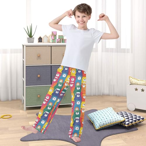 Colorful Rainbow Bears Pajamas Bottoms with Pockets Comfy Pjs Sleepwear Elastic Waistband Pajamas Pants Lounge Pants for 6-14 Years 7