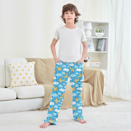 Pajama Bottoms, Plane and Clouds Pajamas Pant Lounge Wear Sleep Long Pants Casual Sleepwear PJS 4